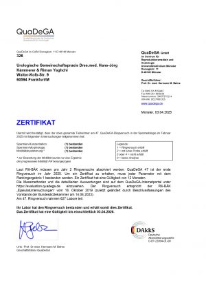 Zertifikate Ringversuche Tumormarker, PSA, Testosteron und Bakteriologie Stiftung Praxissiegel Qualitätskontrolle der Deutschen Gesellschaft für Andrologie